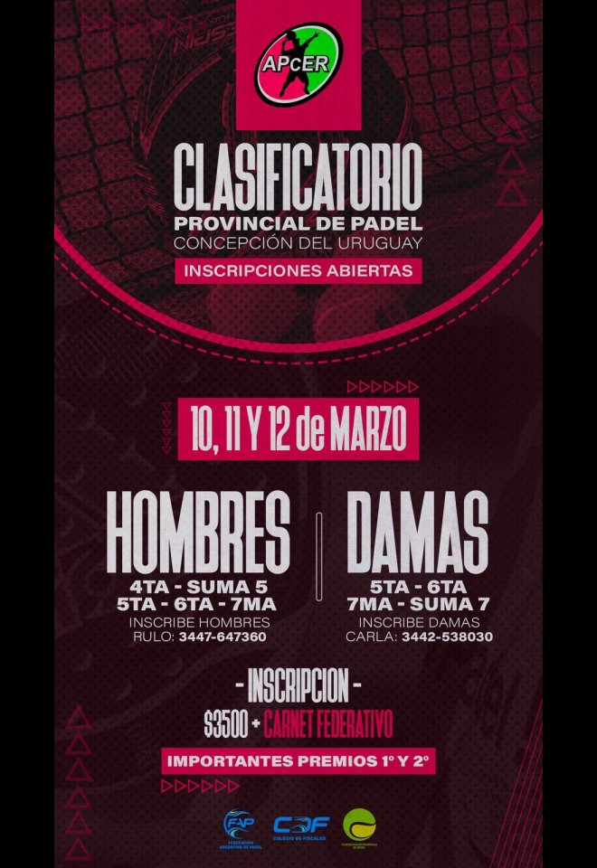 »» Evento: Etapa 1 - 2023 APCER »» Localidad: C. del Uruguay »» Fechas: 10/03/2023 al 12/03/2023