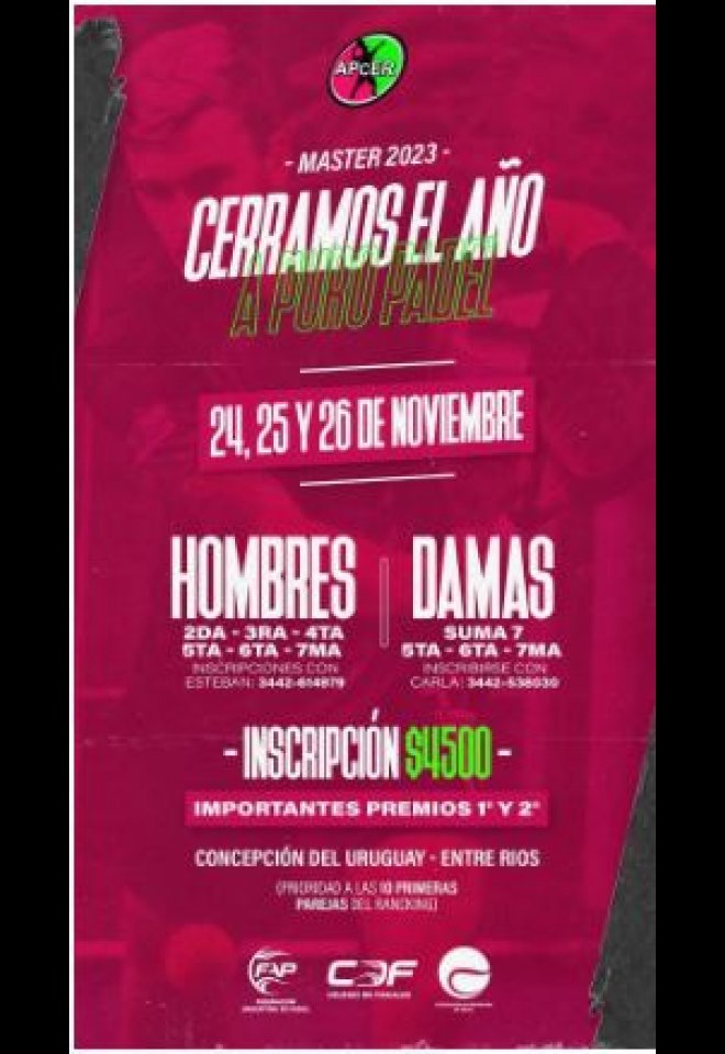 »» Evento: MASTER APCER - 2023 »» Localidad: C. del Uruguay »» Fechas: 24/11/2023 al 26/11/2023