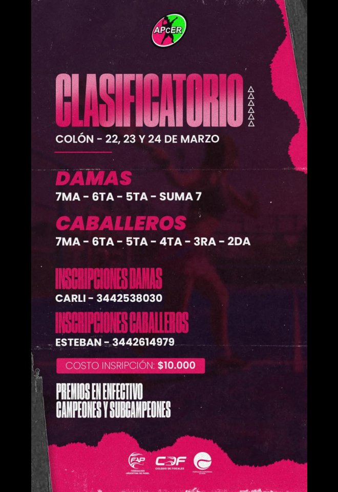 »» Evento: 1er Clasificatorio - Colon »» Localidad: Colon »» Fechas: 22/03/2024 al 24/03/2024