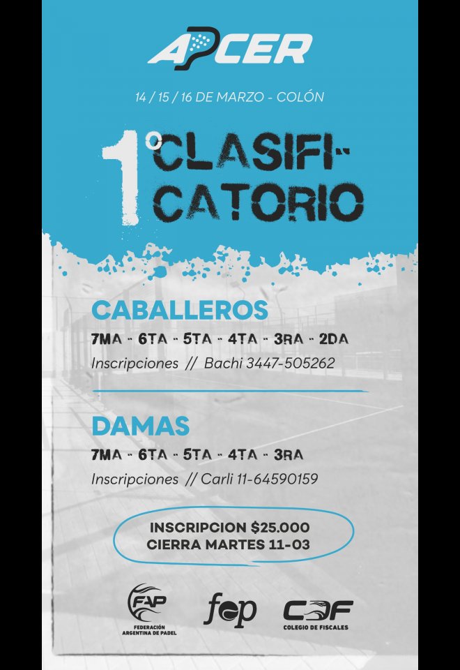 »» Evento: Clasificatorio 202 -Etapa 1 MARZO 2025 COLON SAN J »» Localidad: Colon | San Jose »» Fechas: 14/03/2025 al 16/03/2025